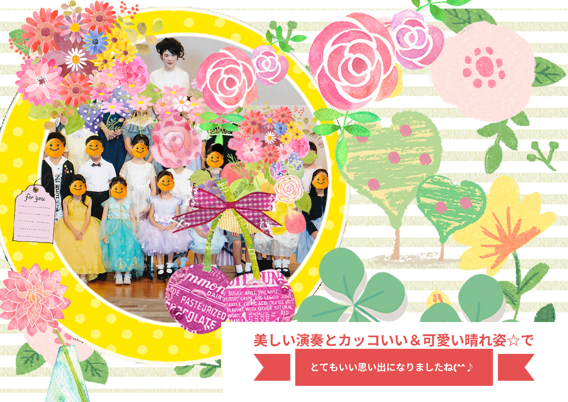 発表会後の全体写真で私の生徒分のみデコった写真+一人一人に総評を書き込んだ賞状(^^♪や
