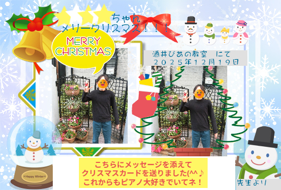 ささやかなクリスマスの飾りと一緒に撮り ”クリスマスカード” にして送りました(^^♪